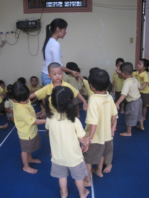 Sau khi trò chuyện xong , chúng ta cùng vận động theo nhạc .